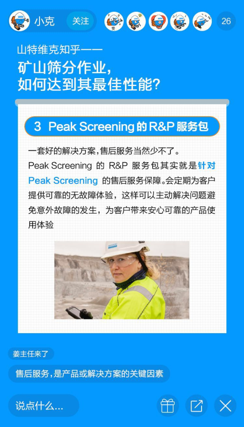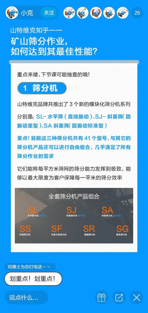今天的直播課就請他,為大家講講礦山開(kāi)采中一個(gè)重要環(huán)節——篩分。要知道篩分性能不佳會(huì )給開(kāi)采商帶來(lái)不可預估的損失,比如成本的增加、利潤的下降,那你知道如何解決礦山篩分作業(yè)中的痛點(diǎn),從而實(shí)現產(chǎn)能最大化么?今天我們就以山特維克Peaking Screening篩分解決方案為例,看看如何做到「越篩分之顛」!